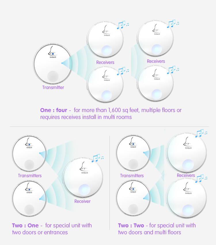 Apart from being deployed as door bell, Linbell G2 can also be used as beepers and deployed as patient calling device in hospital, senior citizen calling device, pregnant calling device at home, and even as wake up music alarm for you children in the morning.