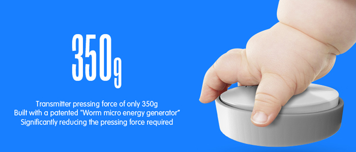 Linbell G2 has solved the dead battery problem for traditional doorbell, by using a self-generating power design, without any battery required. The self-generating power is achieved by pressing the transmitter, which has a patented built-in energy harvesting technology called “Worm Micro energy generator”, which only requires 350g of pressing pressure, and had significantly reduced the pressing force required to generate the power to send the signal to the receiver.