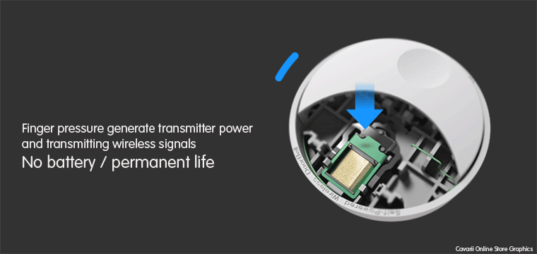 When the transmitter button is pressed, the pressing kinetic energy is converted into electrical energy, to achieve self-generating power, where no batteries are required to achieve a permanent use. The pressing force is just 350g, which is enough to achieve self-generating power, and directly transmitted to the receiver end. The receiving distance is pretty wide range, with up to 100 meters wireless range.