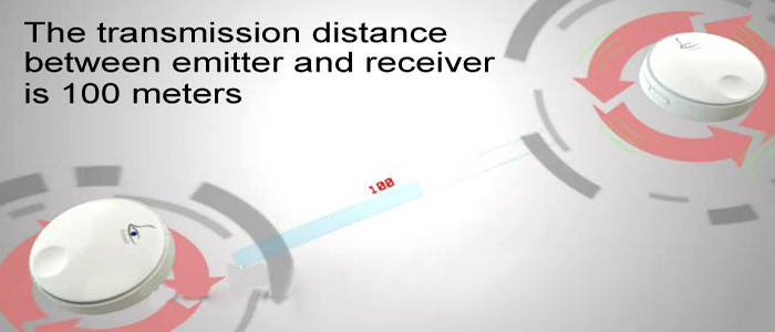 After receiving signal, the receiver emmits sound and small LED light hint. Originally used in mobile phone, the product has an inside hidden luminous Led. The transmission distance between the transmitter and receiver is 100 metres, but the receiver has 3 replay functions, so the transmission distance can be extended to 300 metres*