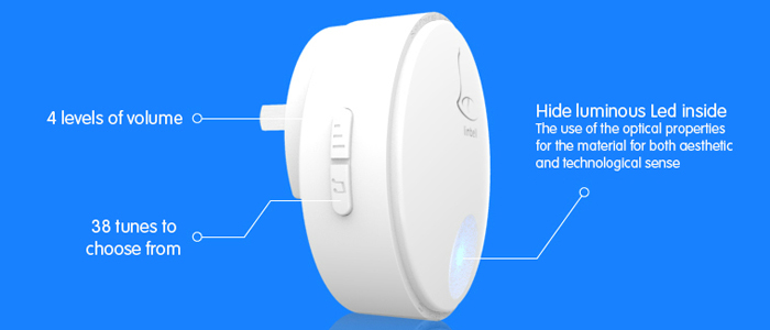 The lightweight doorbell is also water proof, suitable for both indoor and outdoor installation for the transmitter. In order to meet the requirements of different people, it also offer four level adjustable volume, and had 38 music tunes for selection, to solve traditional boring “ding-dong” sound.