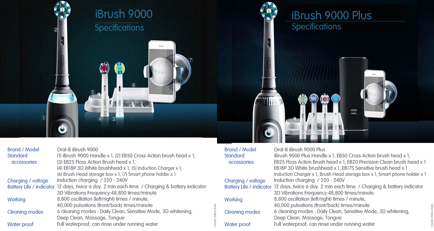 iBrush 9000 Plus is similar to Genius 9000, except with an additional brush head. And for buyer who wants the full feature of the Genius 9000 brush handle, they can choose the iBrush 9000, which is almost 1/3 cheaper in price, but without the premium Smart Travel case, and coming with 3 brush heads only.