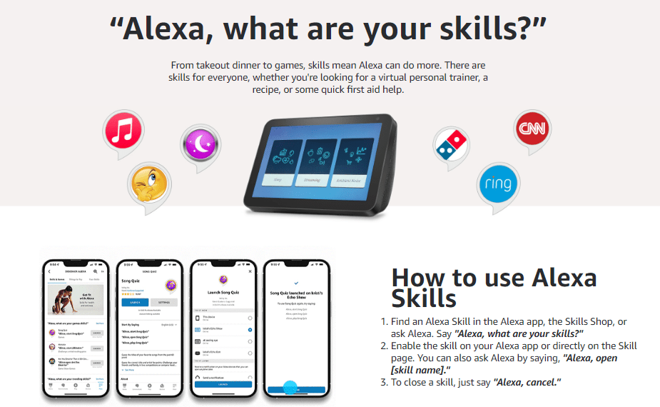 Alexa Skills refer to the individual capabilities that can be performed by Amazon’s Alexa voice assistant. These range from answering questions to controlling smart home devices and even playing games. While Alexa has many skills built into her core programming, there are countless skills that will need to be manually activated. Most of those are made by third-party developers.