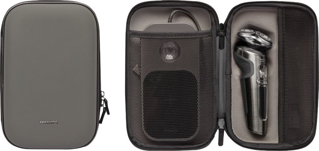 The case can accommodate the shaver along with the beard trimmer and the charging cord, so we can overlook the rather large size. All of them fit very neatly inside as shown in photo above.