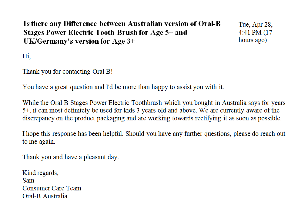 Oral-B’s product will then be packaged differently for different markets, and the packaging box will generally be printed with local languages for individual market’s local buyer’s requirements.
