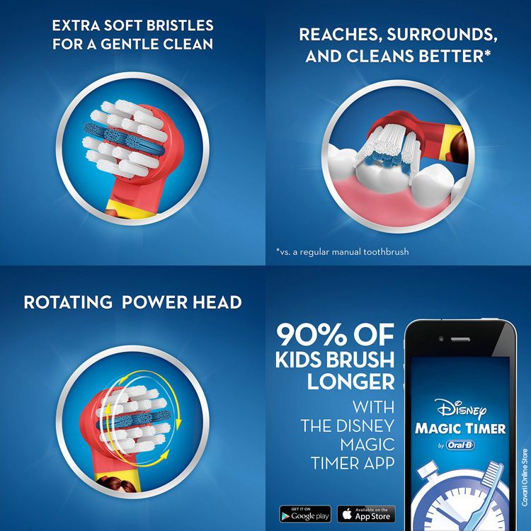 It offer different theme from Disney’s animated films characters, this means that your child will take a liking to at least one of the designs. All brush heads are interchangeable, and is compatible for all ranges brush handles from DB4010K, D12.513K, D10.513K & D1000 models.