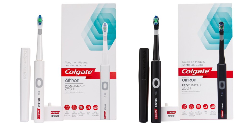 The Colgate ProClinical 250+ comes with 1 cleaning head, a travel cap and a charger. It’s available in white or black, and it’s very straightforward to use. Cleaning results were mixed, with some testers saying it made a difference and others saying it was the same as their current brand. It’s a fairly basic, entry-level toothbrush that won’t break the bank. It’s ideal for someone getting their first electric toothbrush to ease them in.