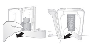 Pull the drip tray out. Clean the interior of the sanitizer with a damp cloth.