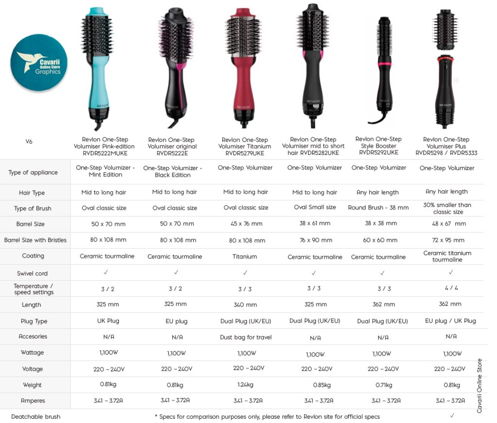 Comparisons of various Revlon One Step models