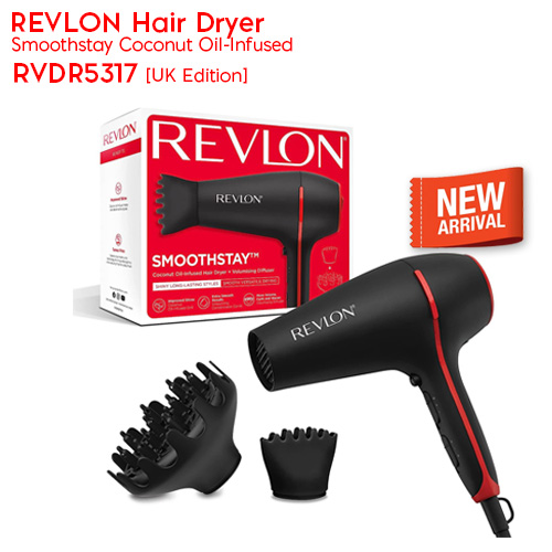 - Revlon RVDR5317 Smoothstay Coconut Oil-Infused Hair Dryer