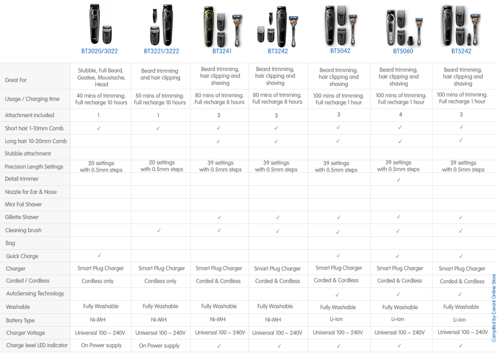 You can see the comparison chart of the various BT models – Comparing various Braun BT Beard Trimmer series models