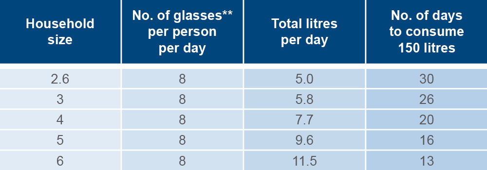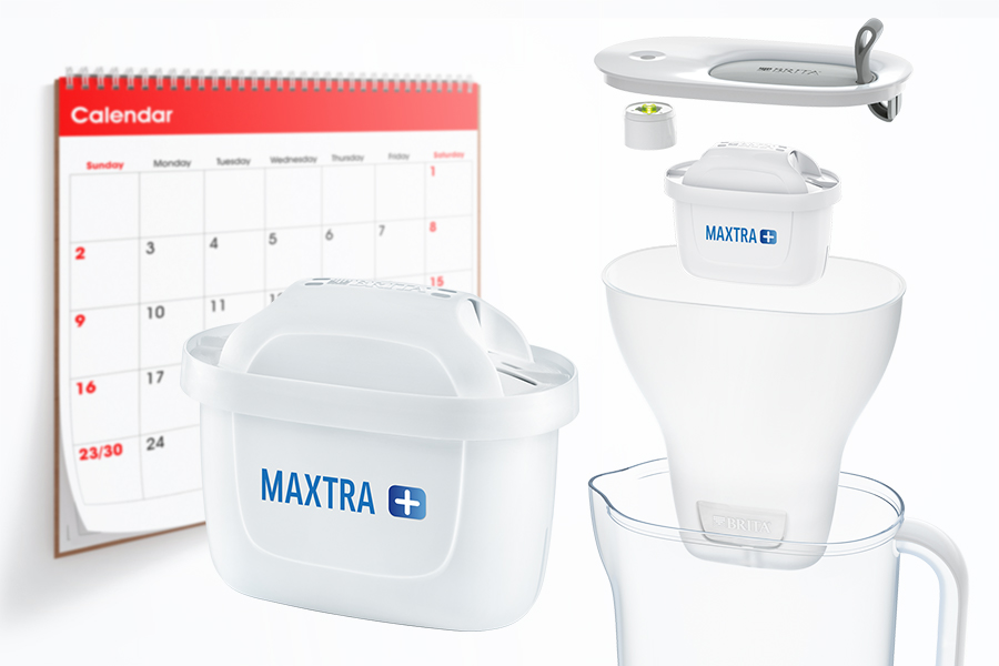 As filtered water consumption is increasing, Brita recommend replacing your MAXTRA+ filter every 4 weeks or 150 litres of water usage. This is based on the average household size of 2.6 people* and consumption of the recommended intake of 8 glasses per day** (based on an average glass size of 240ml).