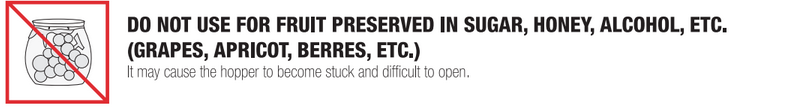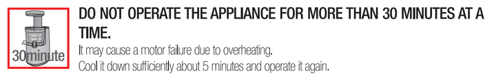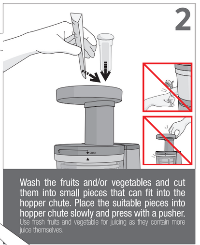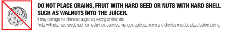 slotting into the juicer, hard fruits if put in big chunks, may break the auger and strainers.