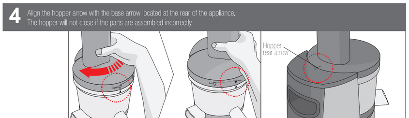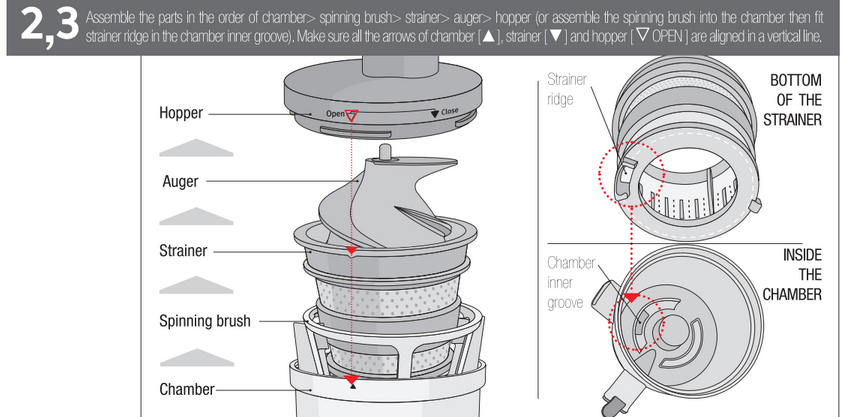 However, if the hopper and chamber had already been dismount from the juicer base, and cannot be put back.