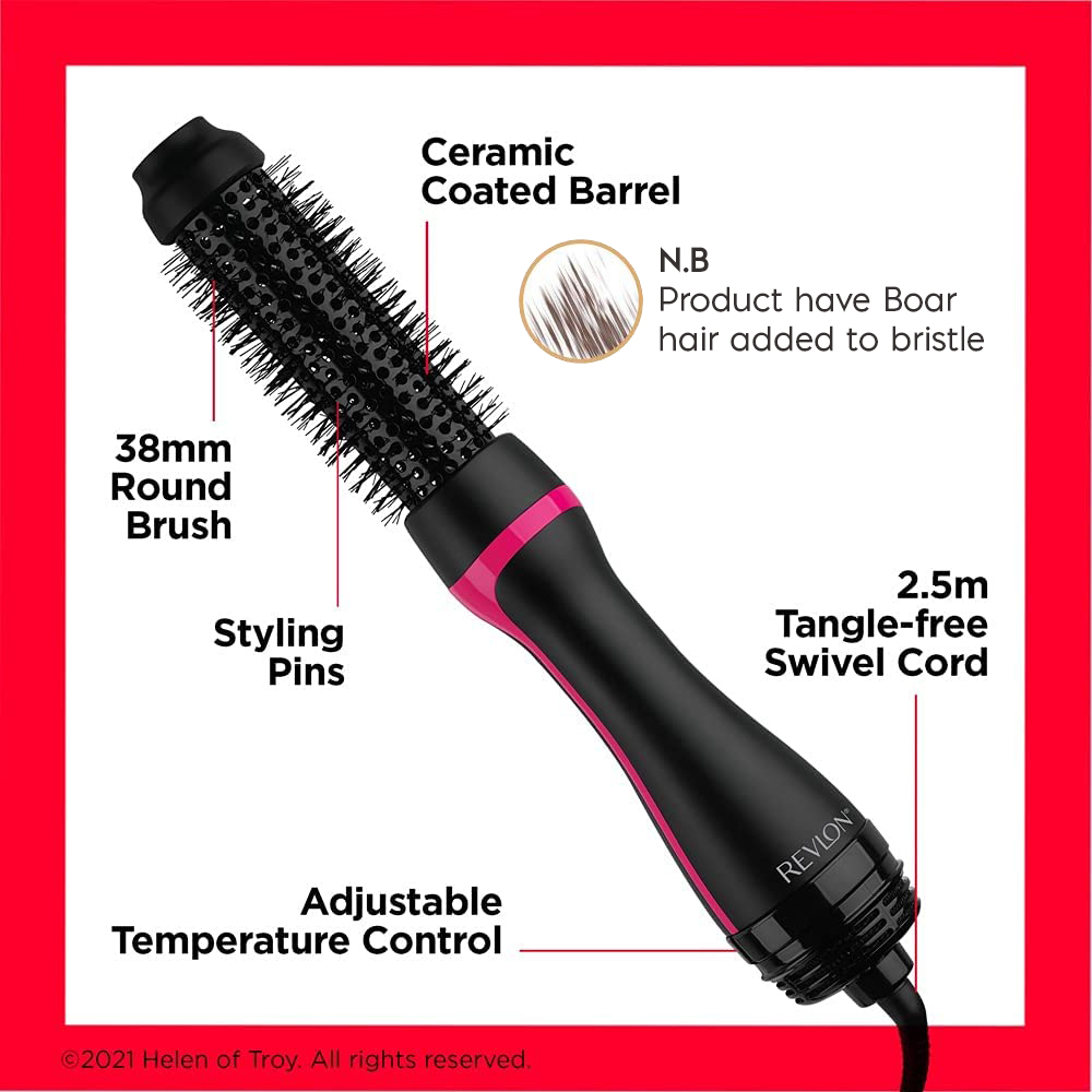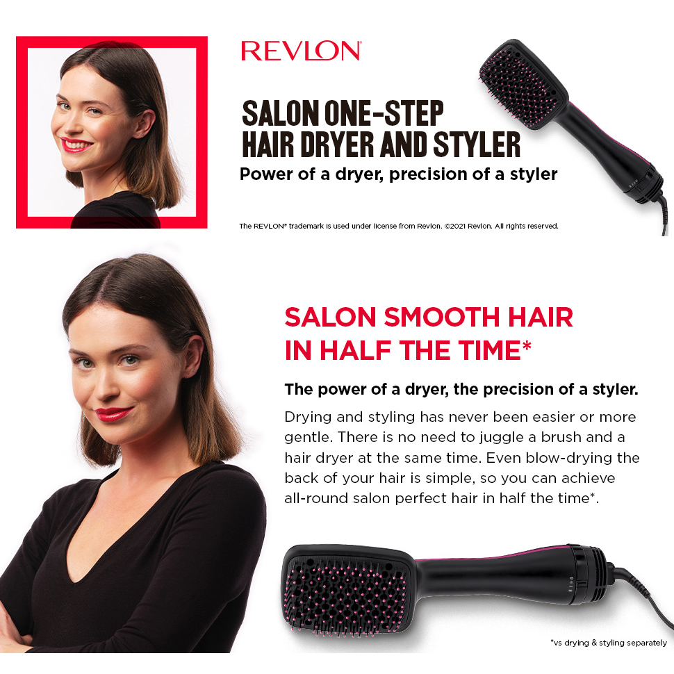 Style faster with the Revlon Pro Collection Salon One-Step Hair Dryer and Volumizer. Ceramic coating helps prevent heat damage while tangle free combination bristles of the brush help detangle and improve volume for silky-smooth results.