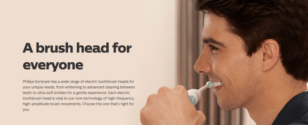 Philips Sonicare has a wide range of electric toothbrush heads for your unique needs, from whitening to advanced cleaning between teeth to ultra-soft bristles for a gentle experience. Each electric toothbrush head is vital to their core technology of high-frequency, high-amplitude brush movements. Choose the one that’s right for you.