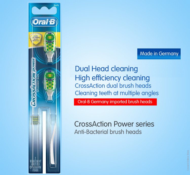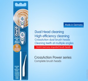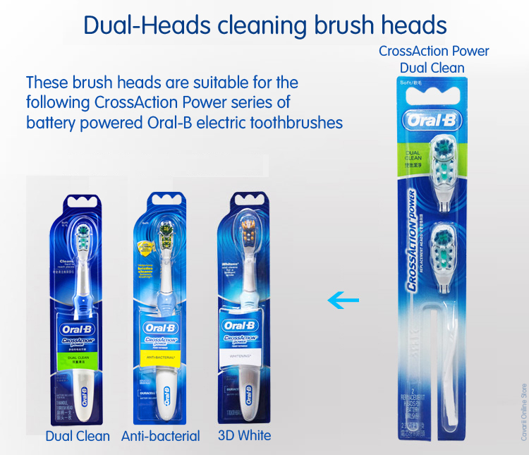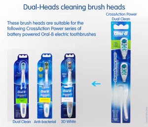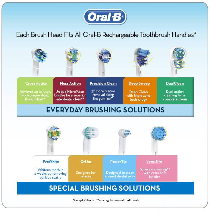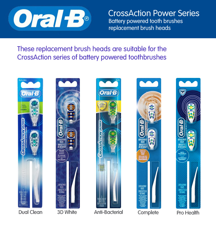 - PowerUp — Designed specifically for the battery operated PowerUp the large head is designed for a good overall clean and even features crisscross bristles on the side for effective gumline cleaning