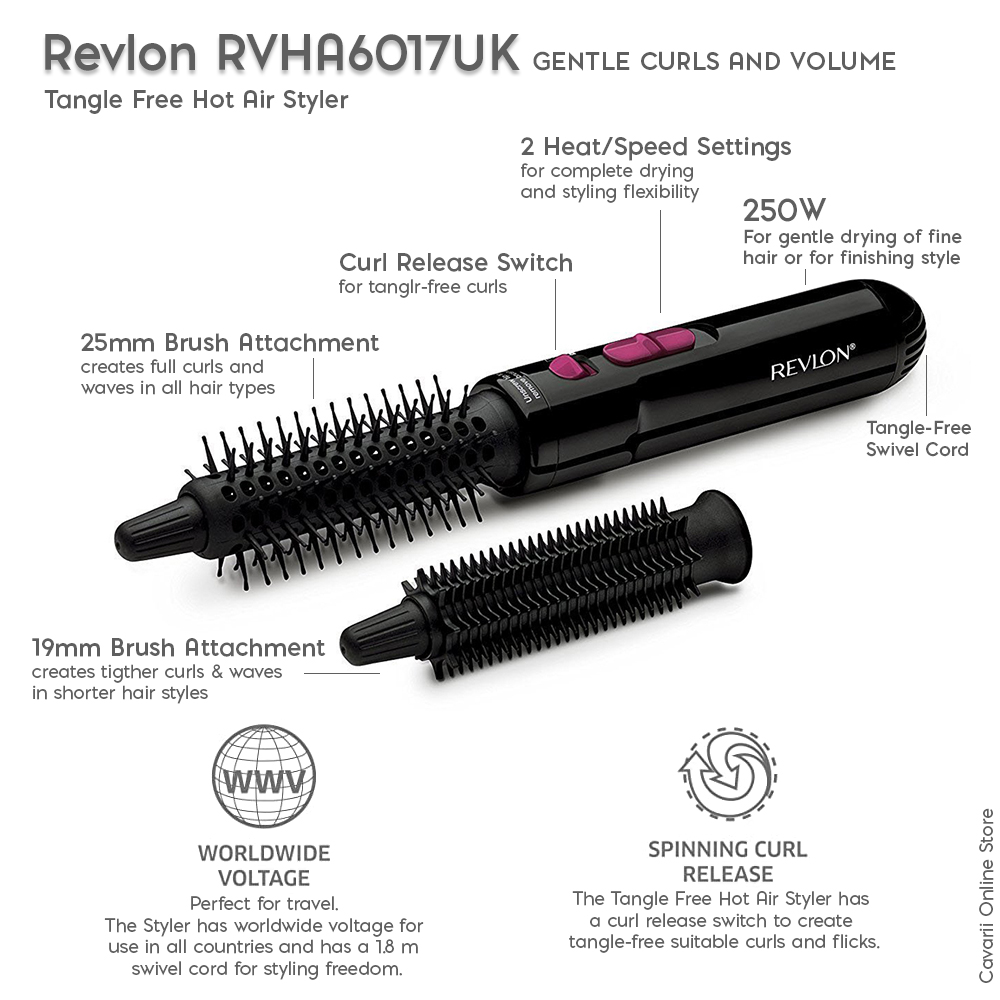From the award-winning one-step family, the Revlon One-Step Blowout Curls combines a curling iron and a hair dryer to curl your hair as it dries. Create shiny, bouncy curls more often with less damage than a traditional curling iron. Heated air flows through vents in the barrel, gently drying and curling in one step. Less damage, more curls.