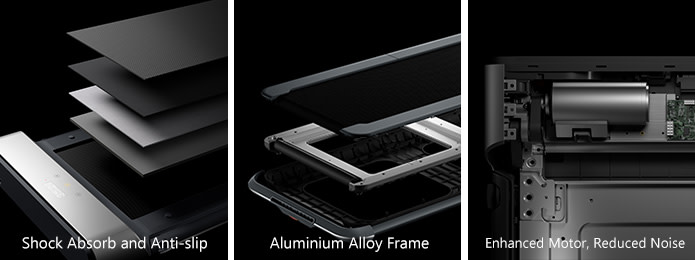 By using an aluminum alloy frame, the durability and stability of WalkingPad R1 are significantly enhanced. We improved the power of the motor but also reduced the noise level at the same time. Additionally, the EVA cushioning softens the impact on your knees and the anti-slip running belt will provide a better grip.